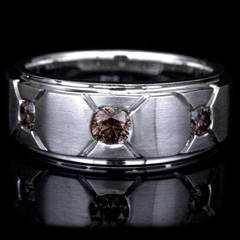 18K WHITE GOLD MEN'S RING W/ 0.59ct. FANCY DIA