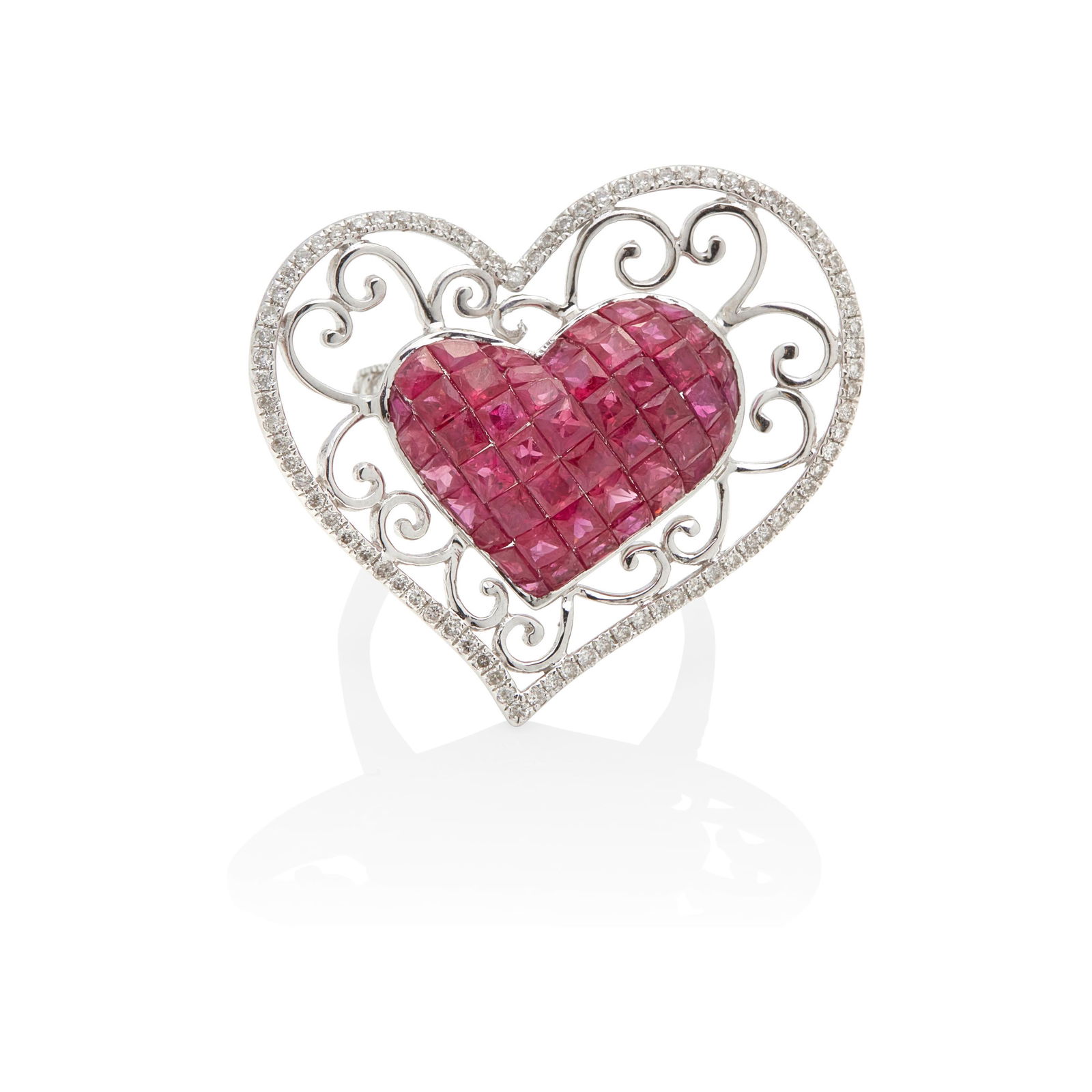 18K White Gold Setting with 1.47ct Heart shapped Ruby and 0.90ct Diamond RingRiverside Galleries4.4(202)$501 day Left
