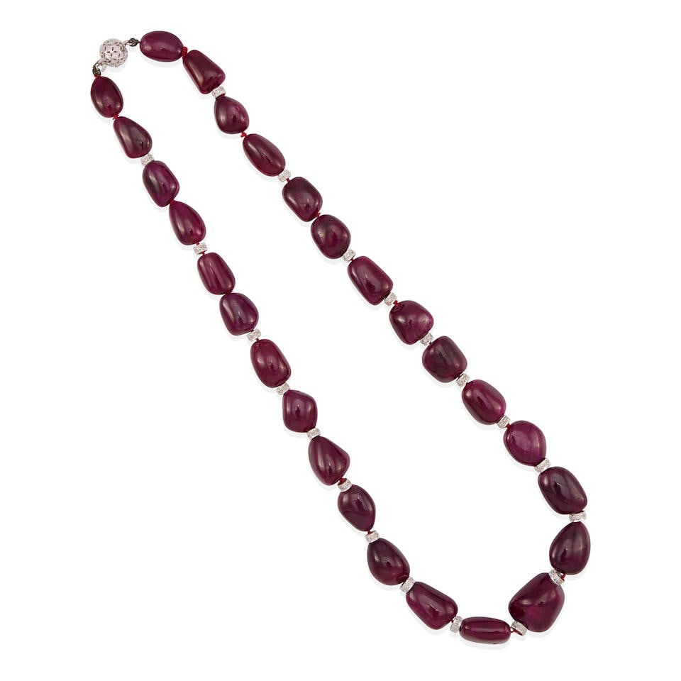 18K WHITE GOLD, RUBY, AND DIAMOND NECKLACE