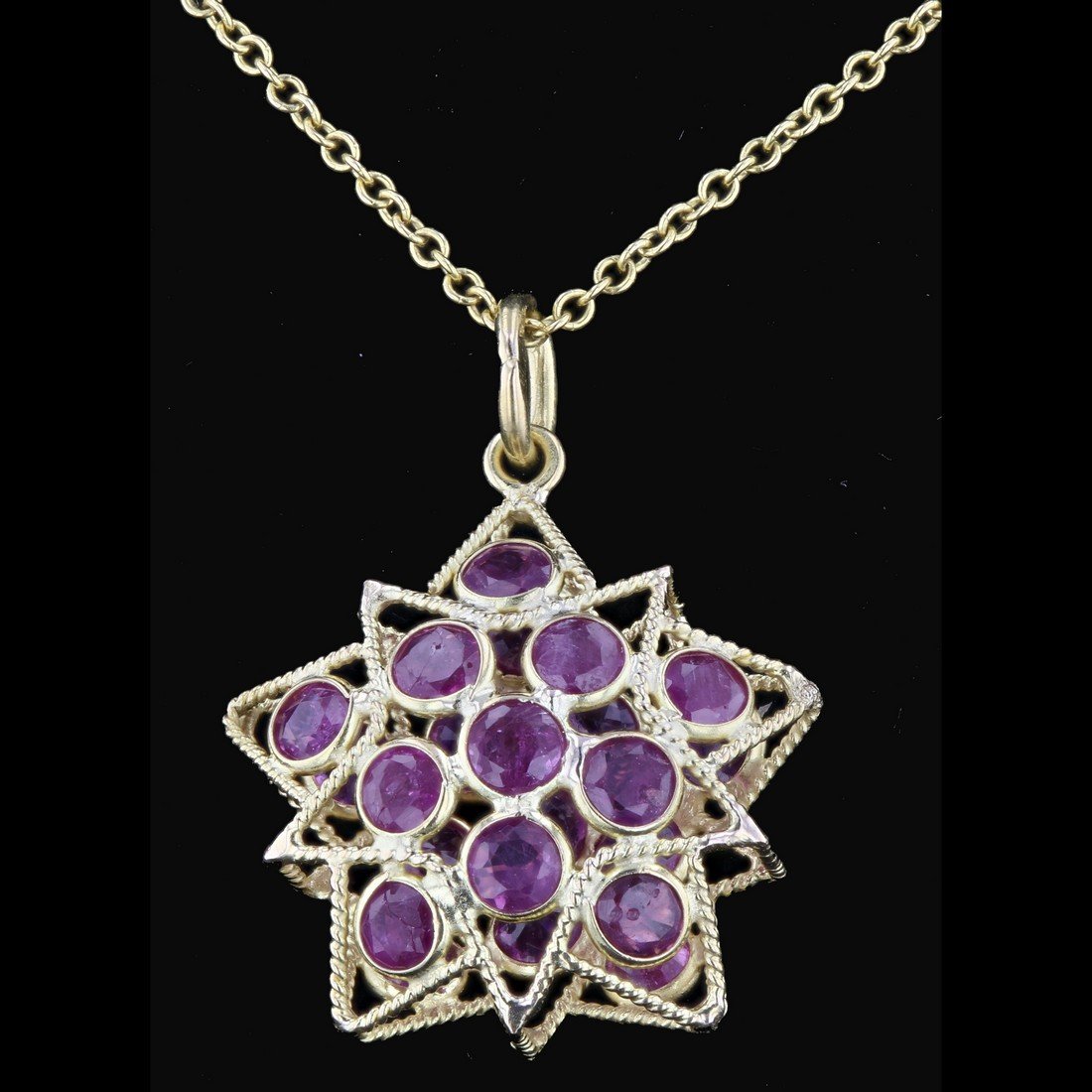 SoldPENDANT - Handmade 22K, 18K & 14K Yellow and WhitePENDANT - Handmade 22K, 18K & 14K Yellow and White Gold, Ruby and Diamond Pendant, center set with an oval natural deep Burma red color ruby measuring approx. 9.80 x 6.98 x 4.25mm and weighing 2.72ctsSee Sold Price