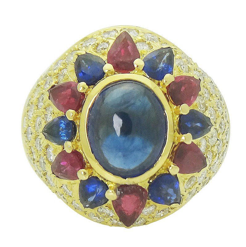 18K Yellow Gold DIamond Sapphire and Ruby Ring