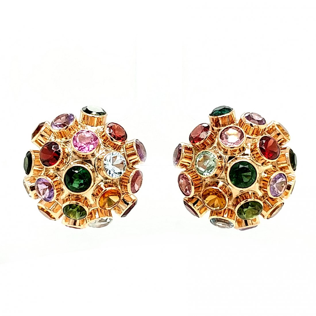 18K Yellow Gold Multi-Gemstone Orb Earrings