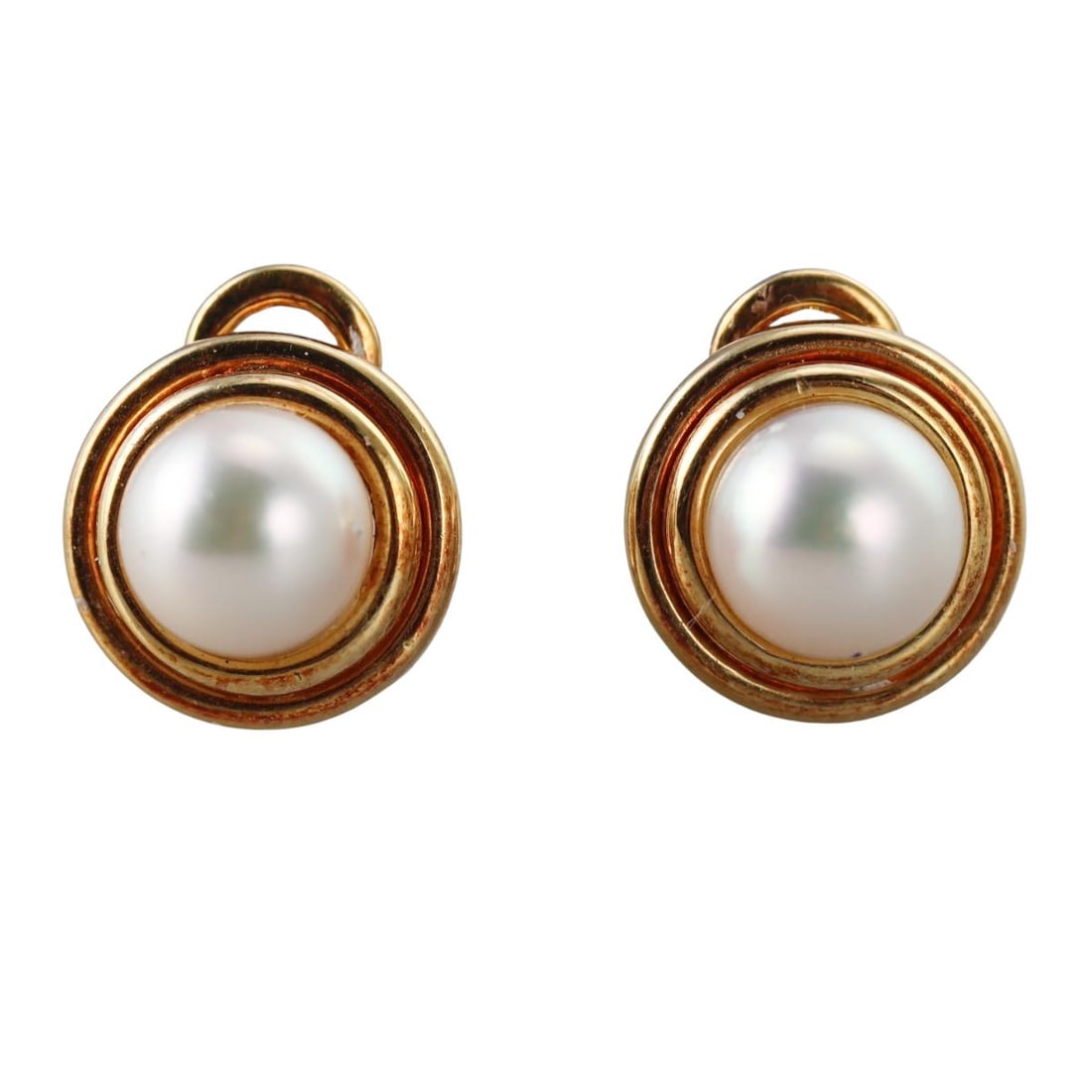 18k Yellow Gold Pearl Button Earrings