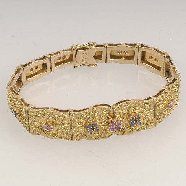 RUBY SAPPHIRE EMERALD BRACELET WITH DIAMONDS 14K YELLOW GOLD BAR LINK 10.35CTModern Jewelry4.4(205)See Sold PriceJul 13, 2025