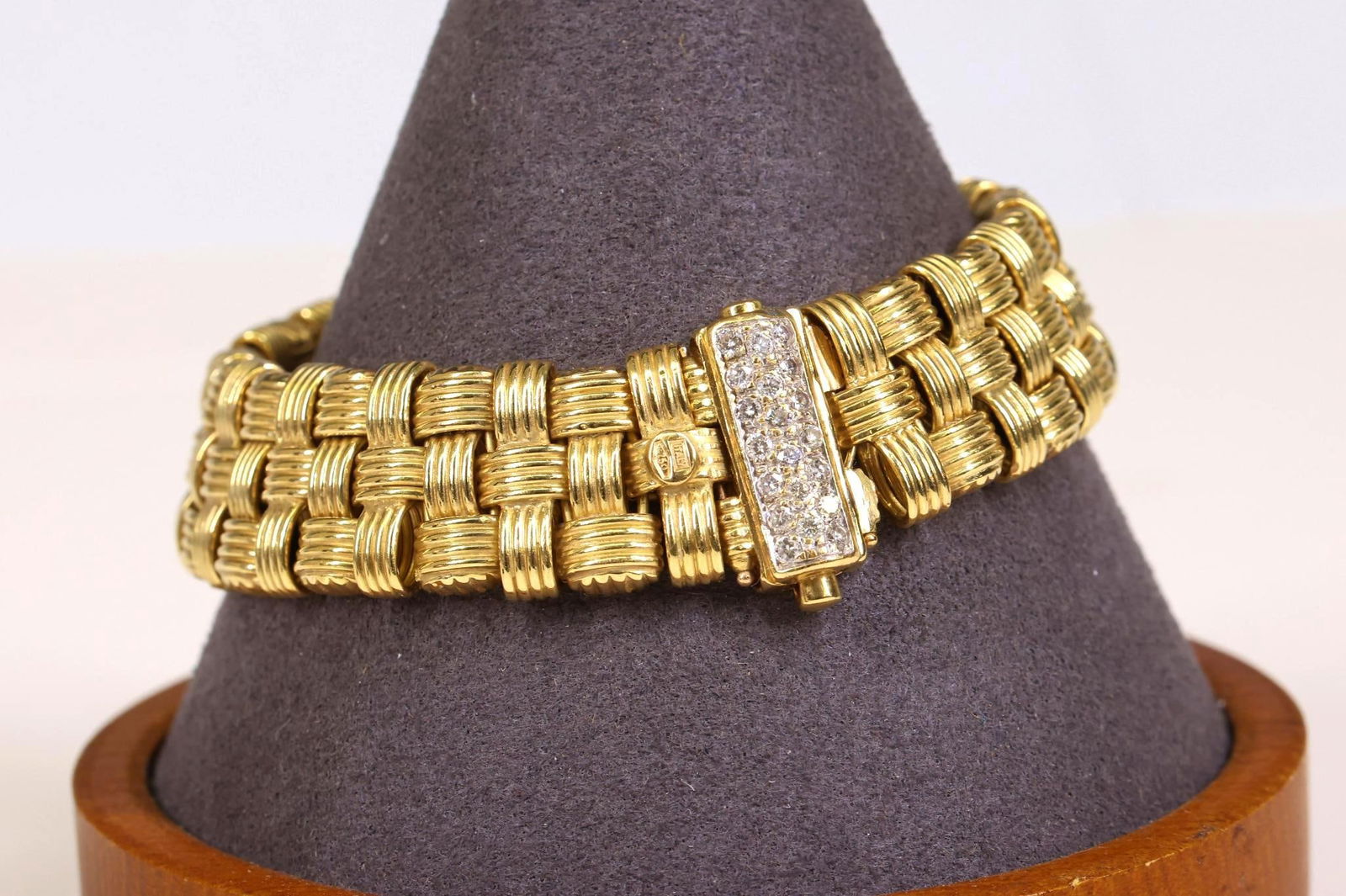 Sold18kyg Diamond Bracelet By Jose Hess18kyg diamond bracelet By designer Jose Hess with round prong and channel set diamonds, weighing approx. 5.00ctw, VS clarity and G-H color, 2 1/4" inside diameter. 35.5gmSee Sold Price