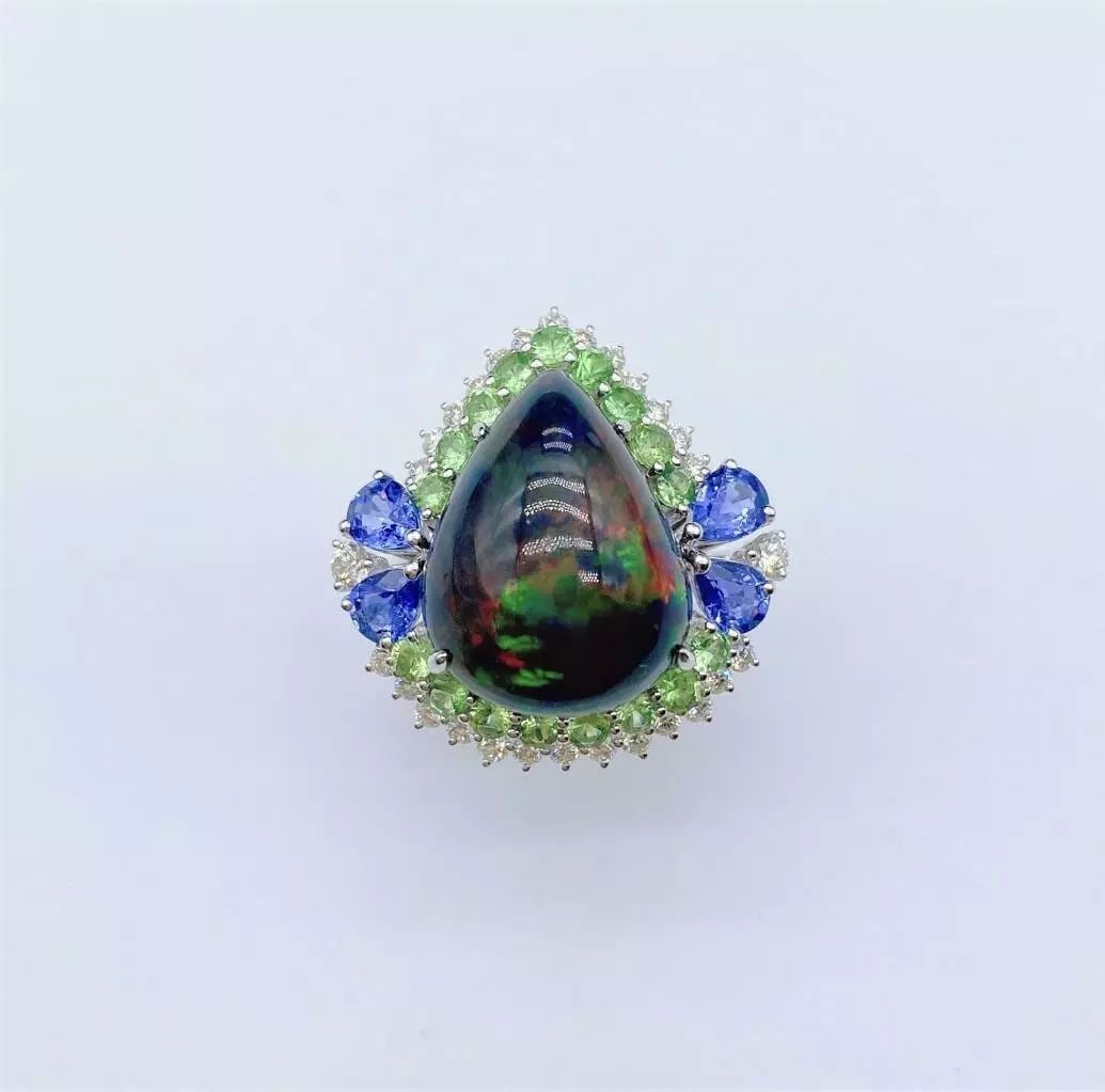 18KT BLACK OPAL SAPPHIRE DIAMOND RING