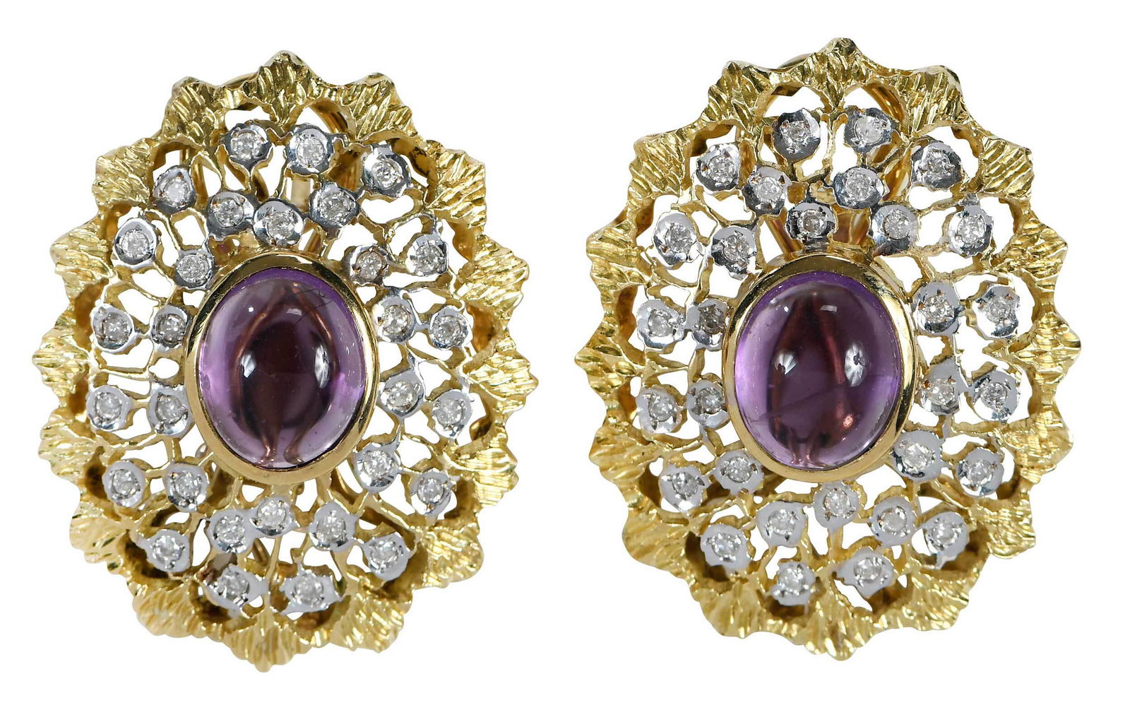 14 kt. Yellow gold, Antique Diamond and Regal Amethyst Oval Earrings in 14K Gold AmethystEastern European Art Gallery Inc$3,0002 days Left