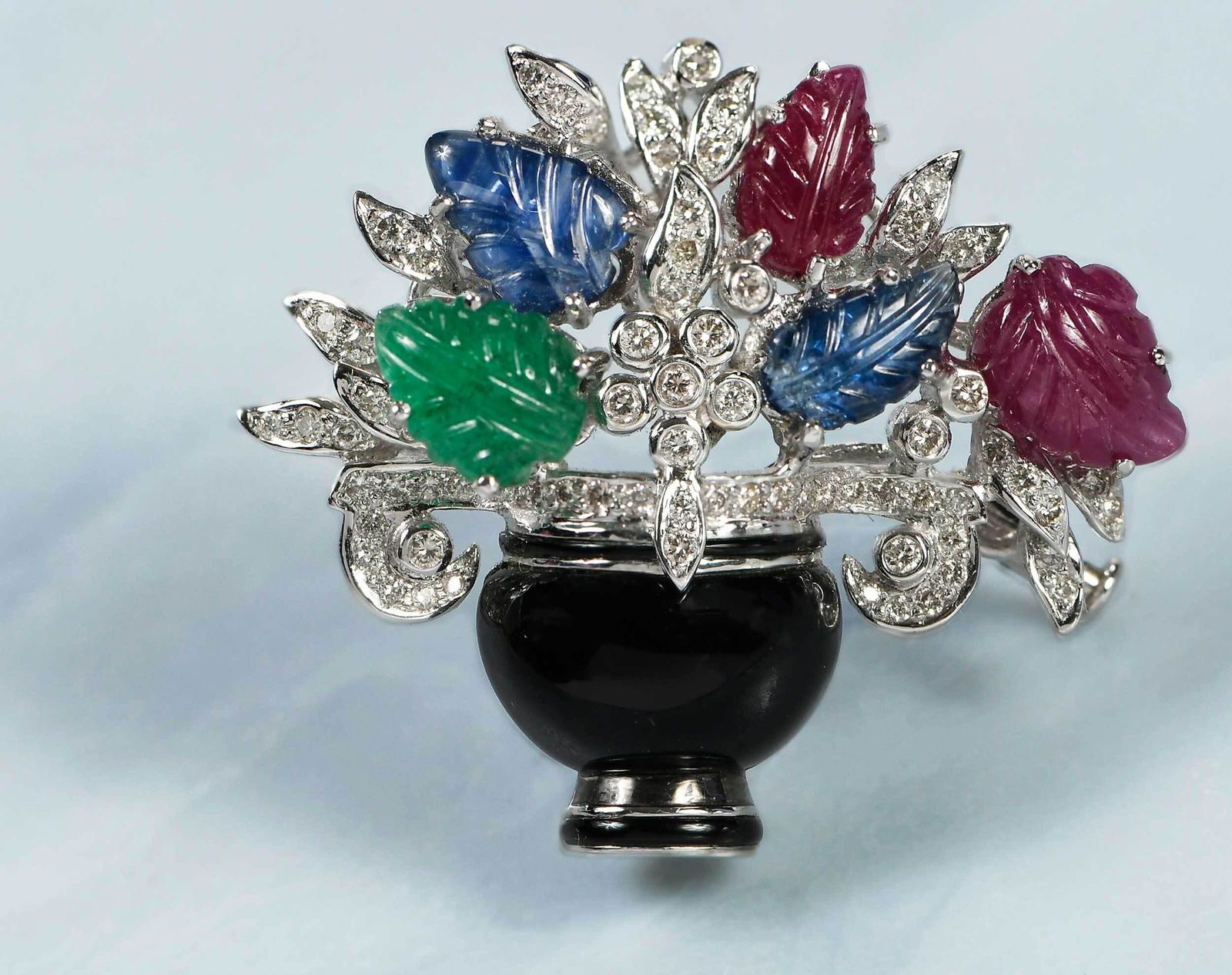 Brooch - 18 kt. Yellow gold, 18K Gold & Diamonds Brooch 19 grams - 0.2ct. tw. JadeEastern European Art Gallery Inc$3,4005 days Left