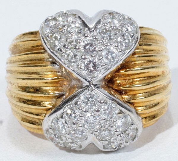 18KT GOLD & DIAMOND HEART RING, SIGNED