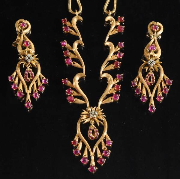 A Ruby & Diamond Bracelet, Earrings & Pendant in 14K & 10K