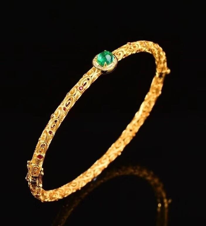 Vintage Green Cabochon Emerald Diamond Bangle Bracelet 18K Yellow Gold, 65 GramsChairish Auctions4.5(10.3k)$10,000