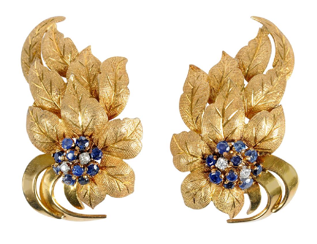 VINTAGE SAPPHIRE AND DIAMOND EAR CLIPS