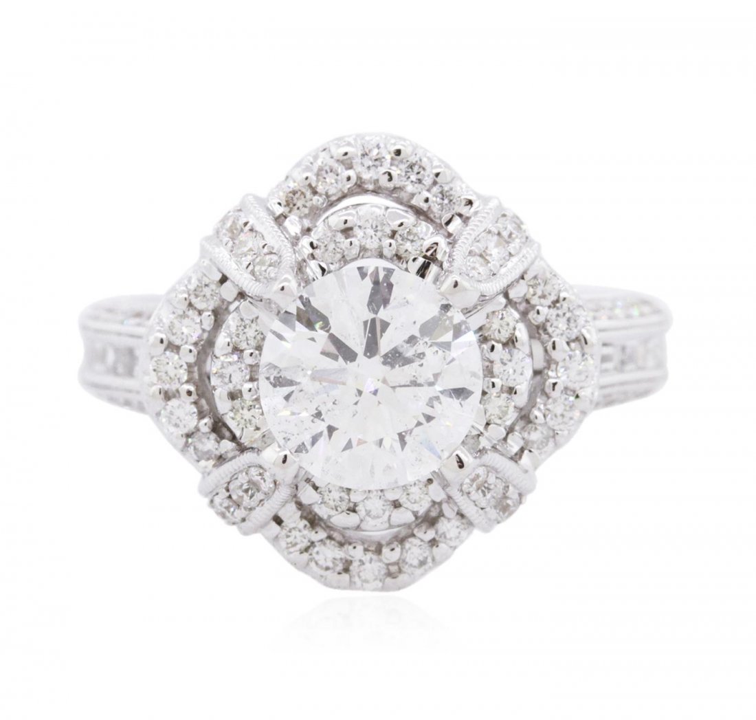 18K White Gold Ladies Ring with 1.24ct center Round Diamond and 1.19ct tw Adjacent DiamondsRiverside Galleries4.4(205)$506 days Left