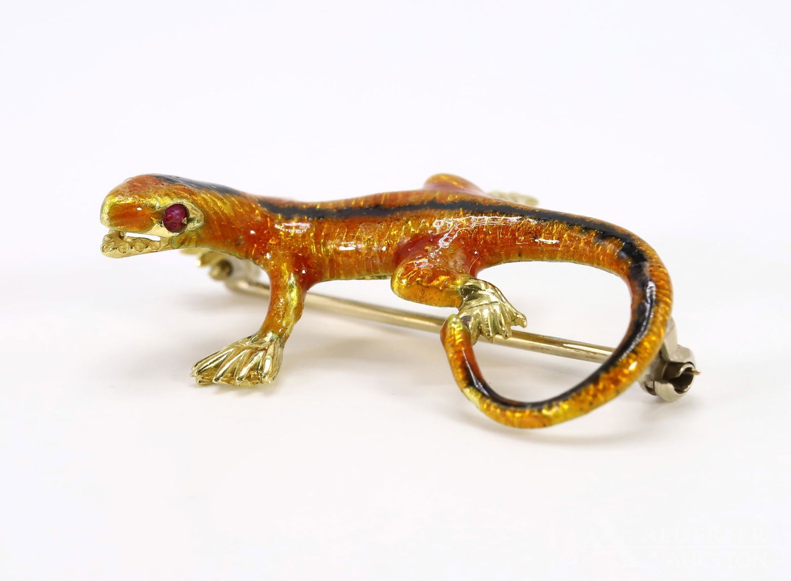 Bracelet Vendorafa Lombardi 18k gold ruby and enamel Rennaisance Revival signed hinged panel braceleBracelet Vendorafa Lombardi 18k gold ruby and enamel Rennaisance Revival signed hinged panel bracelet dates from the 1950s or 1960s and was made by Italian goldsmith Vendorafa Lombardi, founded in 195