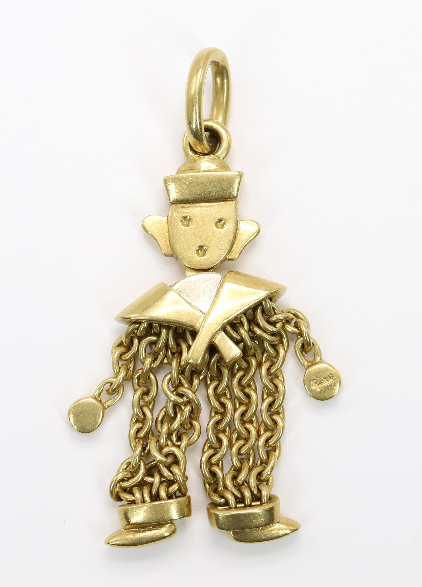 Vintage 10k Gold Chain 18k Coin Pendant NecklaceDelightful 18kt Yellow Gold Jester-inspired Doll Pendant with Articulated Arms/Legs - Weight 4.67grFeb 20, 2026NEW 14K TWO TONE GOLD BOY PENDANTMar 01, 2026NEW 14K YELLOW GOLD IT'S A BOY PENDANT / CHARMMar 10, 2026NEW 14K TRI COLOR GOLD BOY PENDANT 14K TRI COLOR GOLD NEW BOY PENDANT WEIGHT: 0.8gMar 05, 2026NEW 14K YELLOW GOLD CZ FANCY CHARM PENDANT BOYMar 10, 2026VINTAGE SOLID 14KT YELLOW GOLD CHARM PENDANTFeb 28, 2026Vintage 18K Gold Clown Charm Pendant with Diamonds Emerald Ruby Sapphire2 days LeftVintage 18K Gold Clown Charm Pendant with Diamonds Emerald Ruby Sapphire2 days LeftVINTAGE JEWELERS SOLID 14KT YELLOW GOLD CHARM PENDANT3 days LeftNEW 14K YELLOW GOLD BOY WITH BALL PENDANTMar 01, 2026Top Pomellato Articulated Movable Angel 18k Gold Pendant Charm Necklace6 days LeftVintage 18K Gold Clown Charm Pendant with Diamonds Emerald Ruby Sapphire6 hrs LeftNEW 14K YELLOW GOLD IT'S A GIRL PENDANT / CHARMMar 10, 2026BUDDHA SHAPED PENDANT NECKLACE 18K YELLOW GOLDFeb 22, 2026NEW 14K TRI COLOR GOLD GIRL PENDANT 14K TRI COLOR GOLD NEW GIRL PENDANT WEIGHT: 2.3gMar 05, 2026