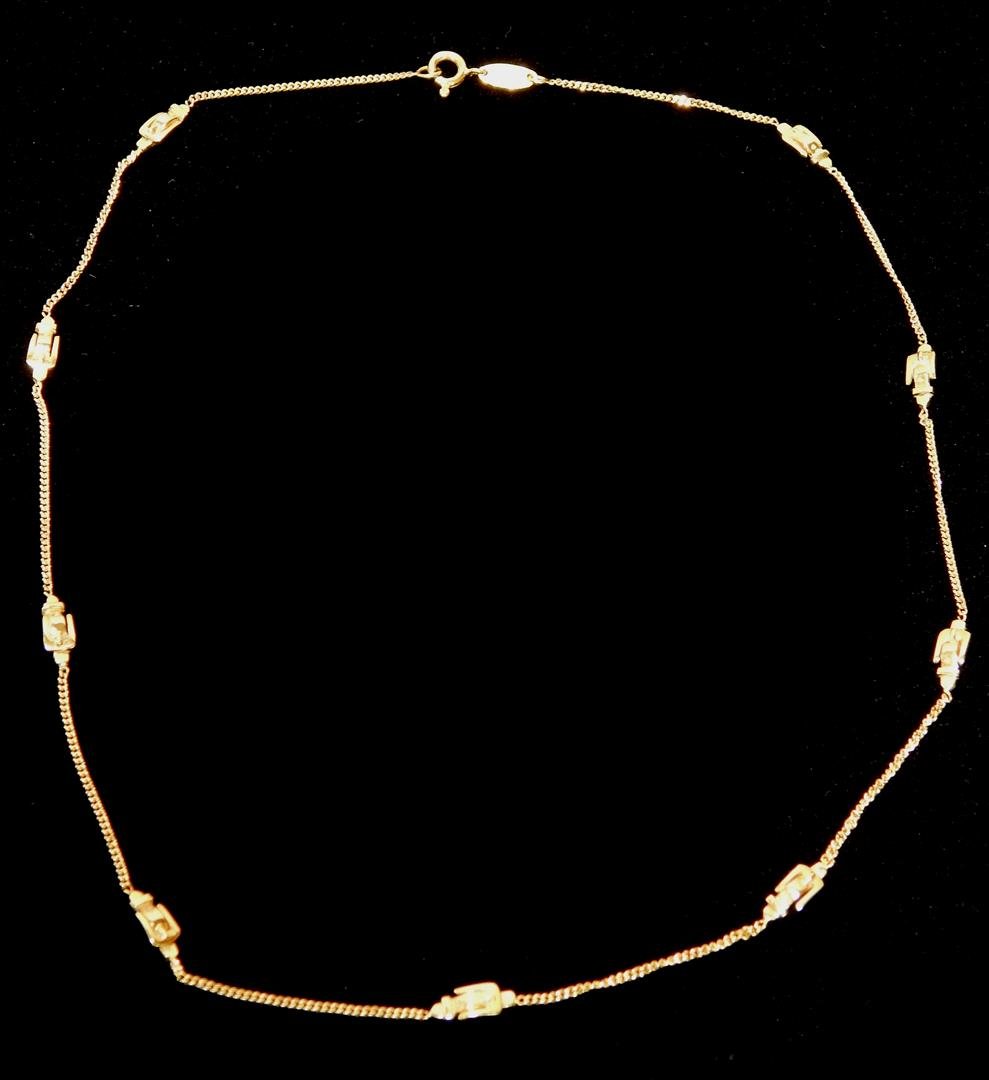 SoldVintage Gucci 18k Gold Horse bit Link NecklaceDESCRIPTION: A Vintage 18k gold Gucci Necklace comprised of a snake chain with horsebit links decorating the body, stamped along the closure "Gucci Italy 18k". Total Weight: 15 Grams (9.6 dwt) CIRCA:See Sold Price