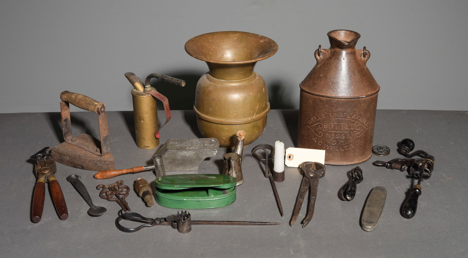 18pcs Assorted Vintage Tools, Spittoon, Etc.