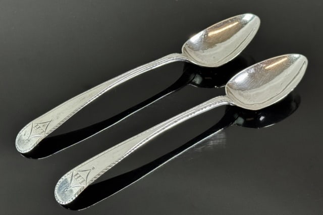 18th C American Silver Coffee Spoons, JL (2pc)