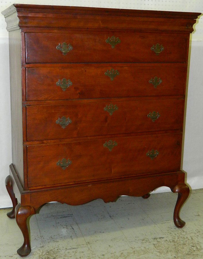 18th c. cherry QA chest on frame.