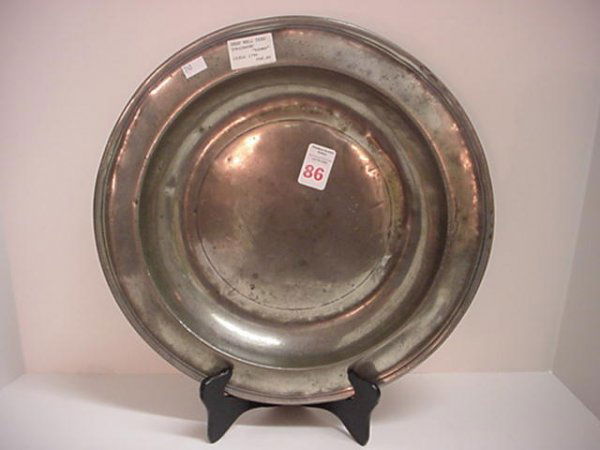 18th C. Deep Well Pewter Dish with Touchmark Brown