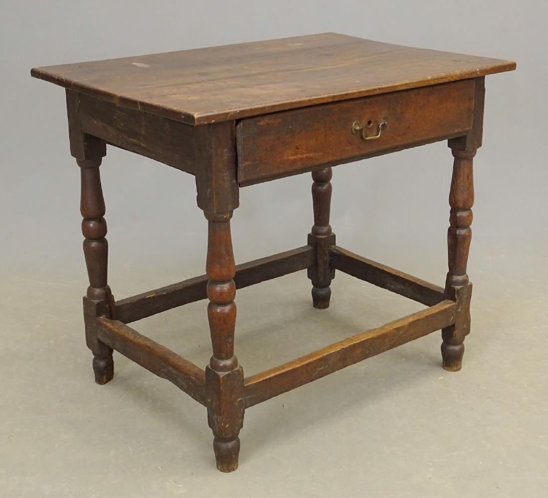 (3) ENGLISH OAK BANDED NESTING TABLES ON TURNED LEGSMar 28, 2026Oak Refectory Table, England, 18th century,Georgian Oak Drop-Leaf Table c.179018thC tavern table on stretcher base - 26" tall x 36 1/2" x 24 1/2" top5 days Left18thC 1 dr tavern table w stretcher base - 30 1/2" tall x 57"x31" topMar 24, 2026Oak TableMar 28, 202618thC American cherry 1 drawer tavern table on stretcher base - 28 1/2" tall x 39 1/2"x29 1/2" top5 days Left18thC 1 dr tavern table w medial stretcher - 25" tall x 43"x46" top7 days Left18thC tavern table w medial stretcher - 25 1/2" tall x 28 1/2"x 20 3/4"Mar 24, 202617TH C. JACOBEAN OAK WORK TABLEApr 12, 2026late 17th/early 18thC joint stool on stretcher base - 20" tall x 23 1/2"x12 1/2"5 days Left18th c Wm and Mary Gateleg Table5 days Left18thC medial stretcher tavern table in old surface - as found - 26" tall x 43" wide x 26" deepMar 24, 2026ENGLISH TURNED OAK OCCASIONAL SIDE TABLEMar 28, 202618thC oval top 1 dr tavern table w stretcher base - 27" tall x 30"x20 1/2" topMar 24, 2026EIGHTEENTH CENTURY OAK TABLE WITH TWO DRAWERS AND TWIST FORM LEGS.Mar 24, 2026