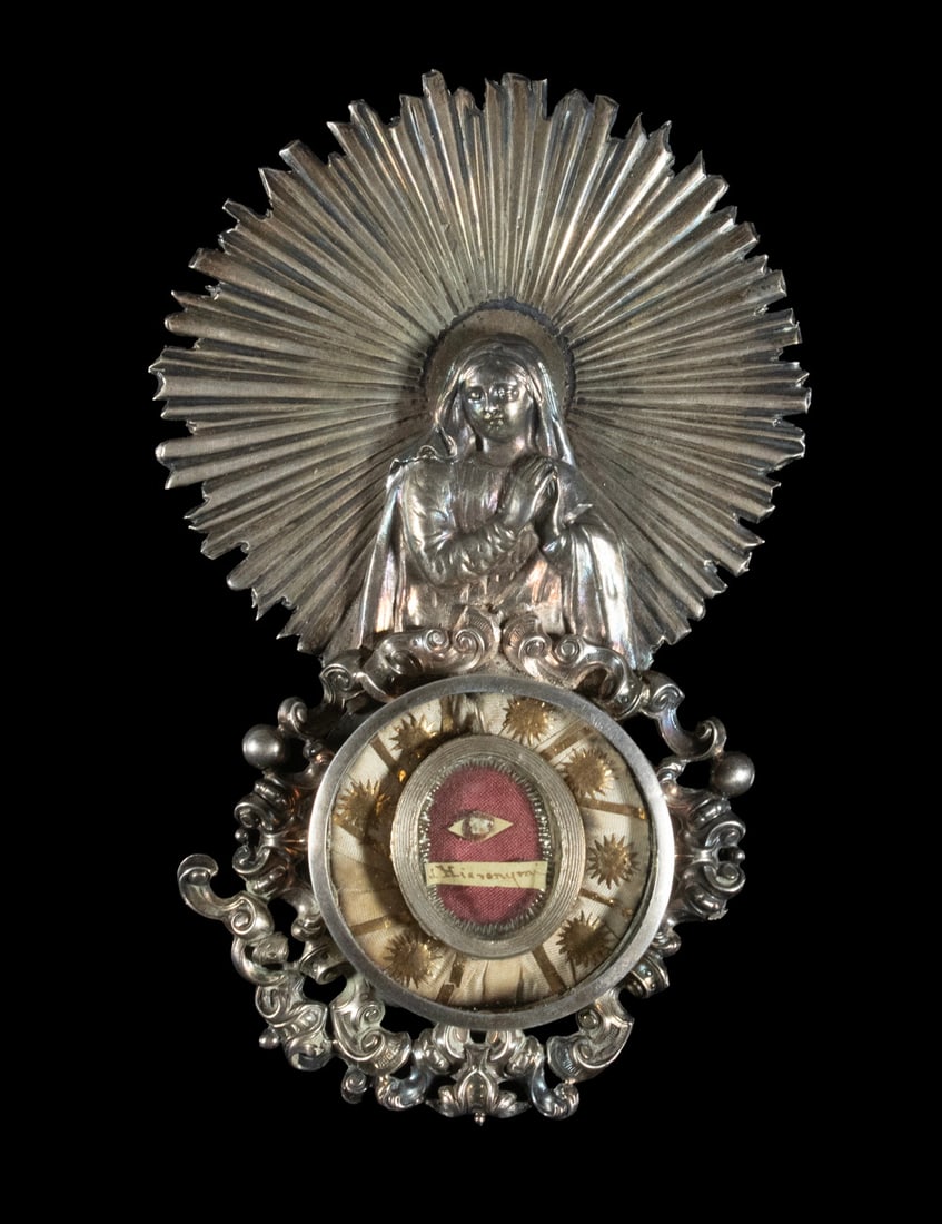 AN INLAID BRONZE AND SILVER 'FLOWER AND LION' TINDER POUCH, CHUCKMUCK, 19TH CENTURYMar 11, 2026A LARGE AND HEAVY SILVER AND GILT COPPER INLAID AMULET BOX DEPICTING AMOGAPASHA, GAU, 18TH CENTURYMar 11, 2026Gilt Metal Monstrance-Style Watch Stand with Lady Racine 0.935 Silver Pocket WatchMar 07, 2026A FINE EMBOSSED METAL AND COPPER PORTABLE SHRINE WITH TSA-TSA, GAU, 19TH CENTURYMar 11, 2026Vintage Sterling Silver Religious Madonna PendantFeb 28, 2026A Reliquary StandMar 03, 2026Medieval Gilt Copper Devotional Reliquary PendantMar 03, 2026Antique 1830 Virgin Mary Miraculous Medal Pendant 800 Silver CatholicMar 05, 2026A Sealed ReliquaryMar 03, 2026A VICTORIAN SILVER-TONED FILIGREE AND ENAMEL PENDANT DEPICTING THE BAPTISM OF CHRISTMar 06, 2026Vintage Heavy Sterling Locket Religious MedalFeb 28, 2026Antique Reliquary Silver Theca Pendant Ex Oss. S. Lucae, Evang15 hrs LeftLarge Medieval Gilt Bronze Champleve Plaque Depicting Christ in MajestyMar 03, 2026RELICS OF 3 MARTYRED SAINTS & ST. CLARE ASSISI IN THECA & PAX RELIQUARY2 days LeftRELIGIOUS RELIC OF ST. PLACIDUS IN GILT-METAL ALTAR RELIQUARY2 days LeftMedieval Knight's Gilt Bronze Horse Harness Pendant and Hanger with Axe-Wielding RiderMar 03, 2026