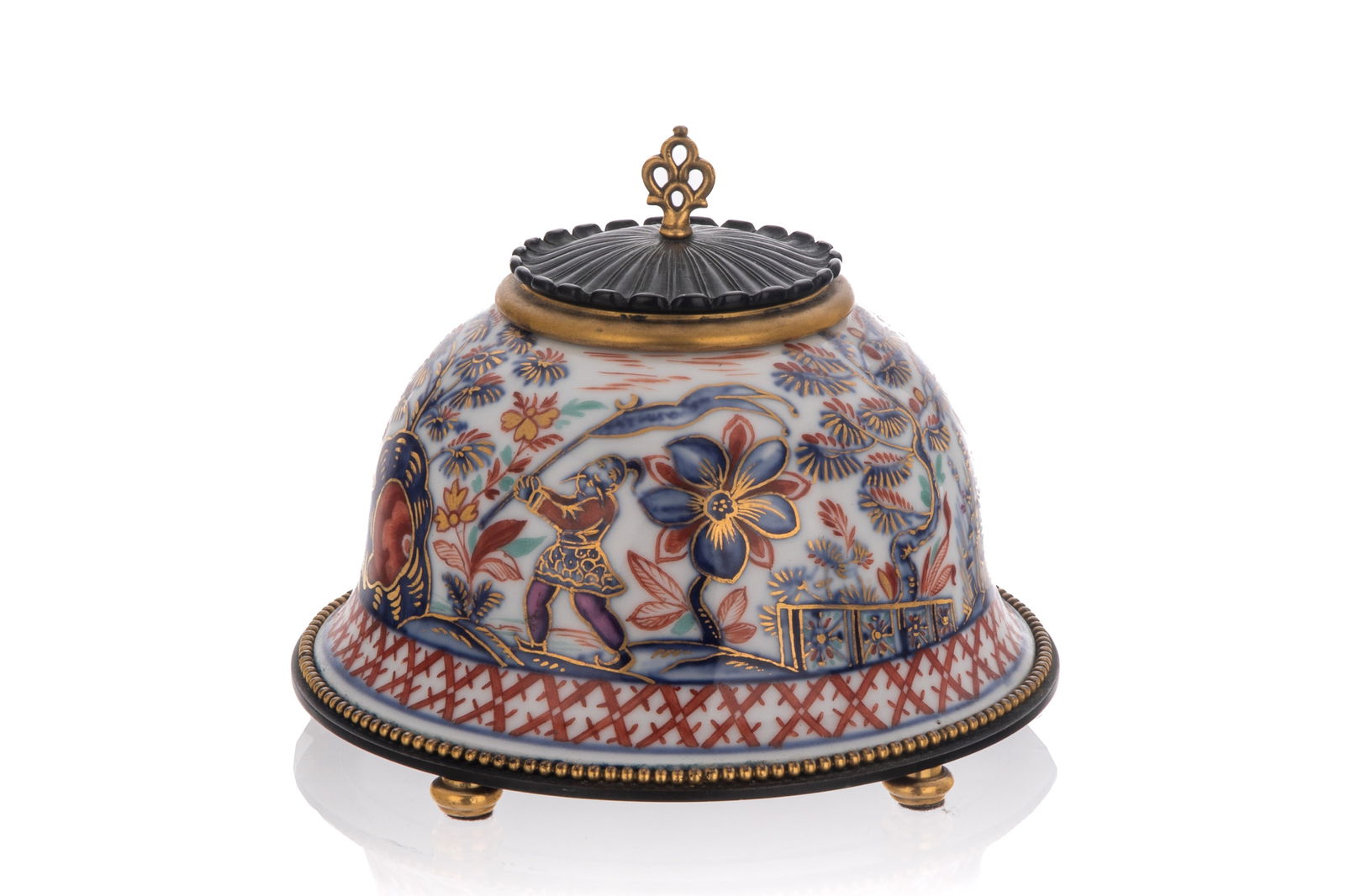 18th C IMARI PORCELAIN MOUNTED INKWELL