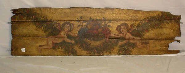 Sold17th/18th century Italian Old Master painted17th/18th century Italian Old Master painted architectural fragment. Carved and gilt panel fragment with 3 portraits of putti. Overall heavy construction. Overall size: 32 H x 66 W x 6in D.See Sold Price