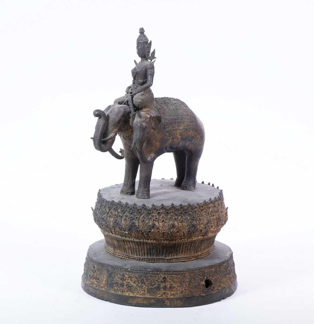 Thai Figures Atop Elephant Metal Sculpture