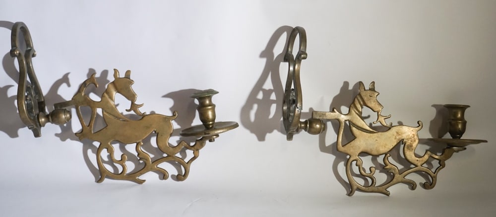 Pair of vintage brass mirrored wall sconces, designed to hold candles.Alice Callahan Auction House4.5(68)$25Mar 28, 2026