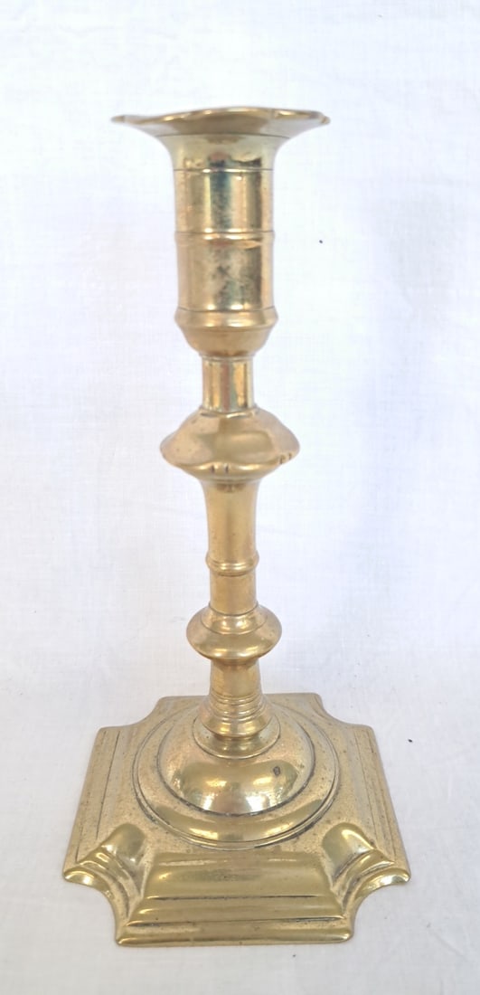 PAIR OF 18TH CENTURY ENGLISH BRASS CANDLESTICKS.