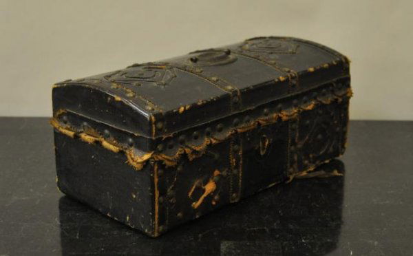 18th century leather and brass bound document box