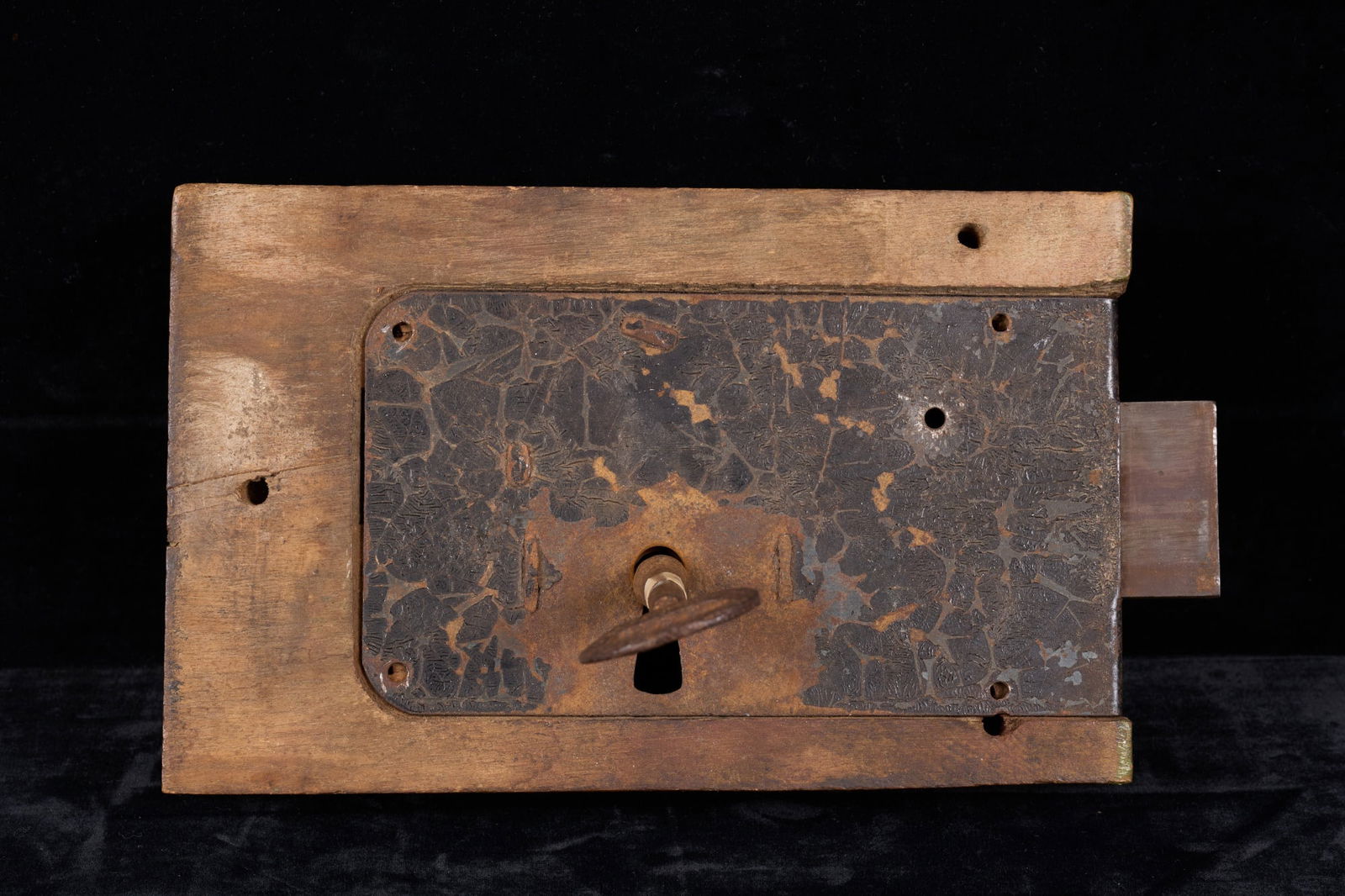 SoldEuropean Iron Bound Cedar Wood BoxEuropean Iron Bound Cedar Wood Box, early 19th century, on four feet with riveted iron locking mechanism to front. 10.5" H x 19" W x 9.5" D. Provenance: From a New York City Collection. Keywords: StorSee Sold Price