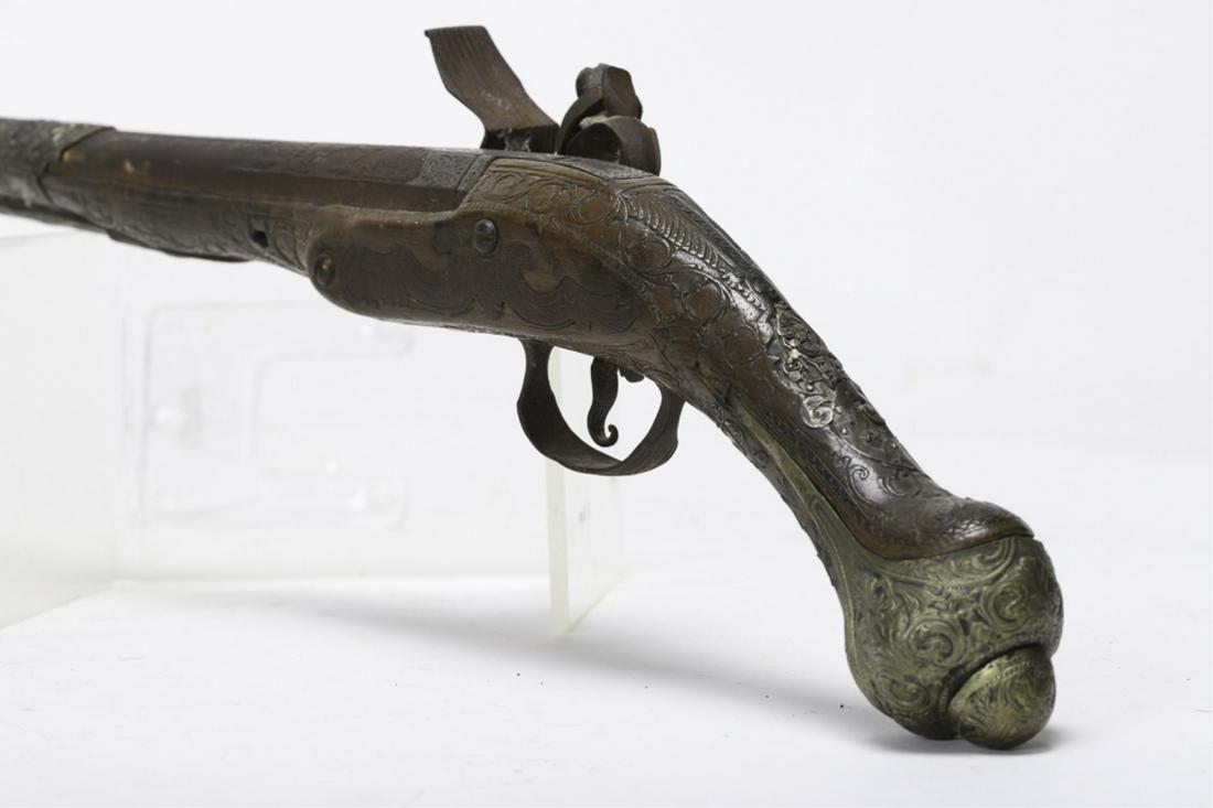 19th-C American Indian Tacked Double Barrel Pistol7 days LeftExcellent 18th C. MIQUELET LOCK FLINTLOCK PISTOL Gold InlaidMar 28, 202619THC.OTTOMAN SILVER INLAID CARVED FLINTLOCK RIFLEMar 25, 2026AN OTTOMAN FLINTLOCK PISTOL WITH SILVER DECORATION, 19TH CEN.Mar 22, 2026A SILVER-MOUNTED AND NIELLO-DECORATED DAGESTAN FLINTLOCK PISTOL, CAUCASUS, 19TH CENTURYMar 22, 2026A SILVER-MOUNTED GREEK OR BALKAN FLINTLOCK PISTOL, CA. 1850Mar 22, 2026A FINE SILVER-MOUNTED FLINTLOCK PISTOL, ANGLO-RUSSIAN, 19TH CEN.Mar 22, 2026A FINE OTTOMAN–BALKAN SILVER-MOUNTED FLINTLOCK PISTOL, 18TH/19TH CENTURYMar 22, 202618th - 19th Century Balkan / Ottoman Miquelet Flintlock Pistol Brass-Mounted,7 days LeftA MIDDLE EASTERN FLINTLOCK BLUNDERBUSS, 19TH CEN.Mar 22, 2026OTTOMAN MOP INLAY SHORT BARREL RIFLEMar 25, 202618th C. Ottoman/Turkish Miquelet Flintlock Gun w/ Silver Inlay & Gold Arabic Script, Signed and7 days LeftAN OTTOMAN FLINTLOCK PISTOL WITH GOLD DAMASCENE ARABIC INSCRIPTIONS, 19TH CEN.Mar 22, 2026Robust FRENCH REVOLUTION FLINTLOCK PISTOL St. EtienneMar 28, 2026Super Rare 18th C. Turkish or Persian Silver-Inlaid Flintlock Long Gun / Rifle-Musket, Carved Stock7 days LeftA FINE SILVER-MOUNTED FLINTLOCK PISTOL, TWISTED STEEL BARREL, 19TH CEN.Mar 22, 2026
