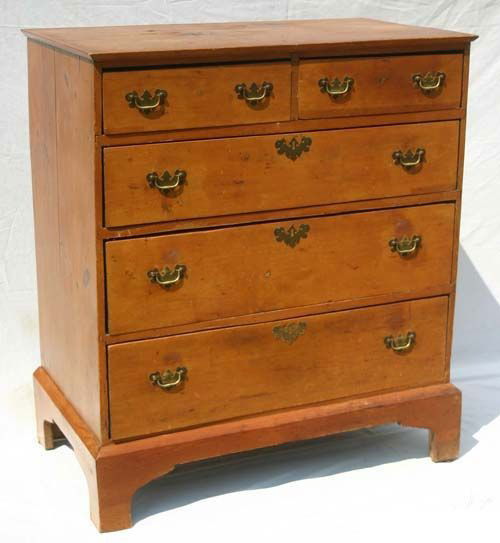 18thC period Chippendale 2 over 3 drawer pine brack