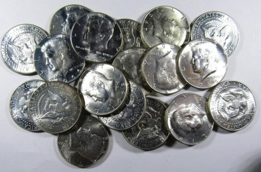 Sold(10) 1966 Kennedy 40% Silver Half Dollars BUWinner shall recevie the exact (10) coins shown here. (JM)See Sold Price