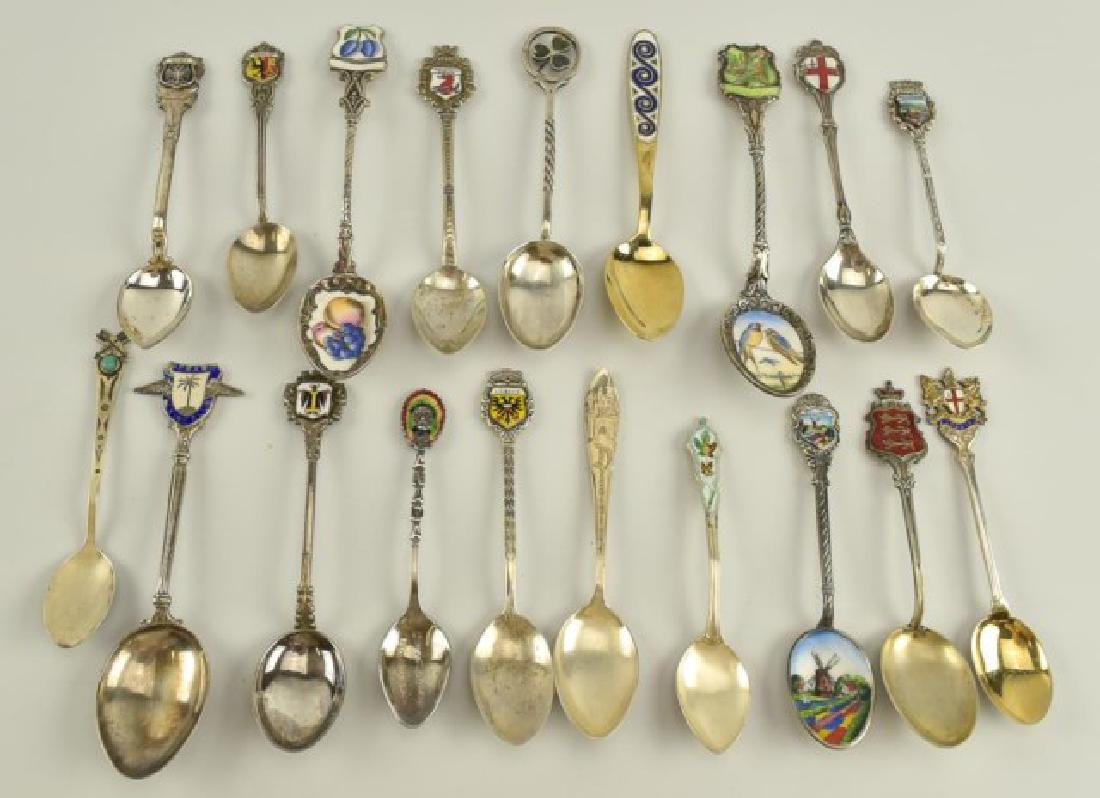 19 Enameled Souvenir Spoons, Mostly Sterling