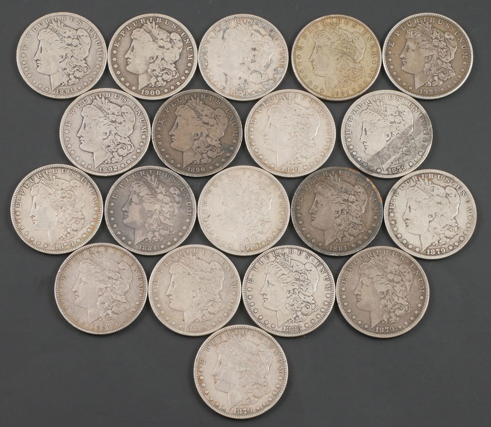 19 Morgan Silver Dollars, various dates