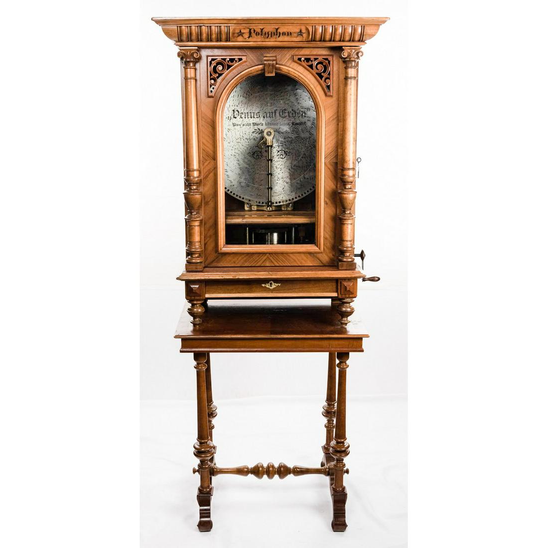 19" Polyphon Disc Music Box Walnut W/Base Table