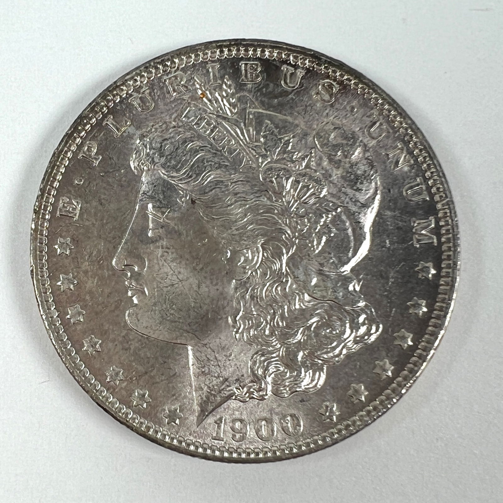 Sold1900-o Morgan silver dollar (BU?)1900-o Morgan silver dollar (New Orleans mint). 90% silver. Consigner reported to be BU.See Sold Price