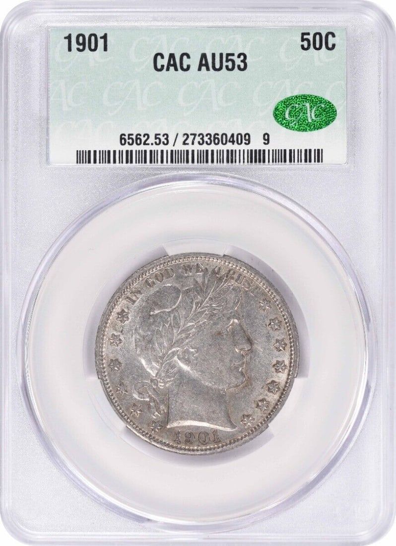 CACG 1901 Barber Silver Half Dollar AU53