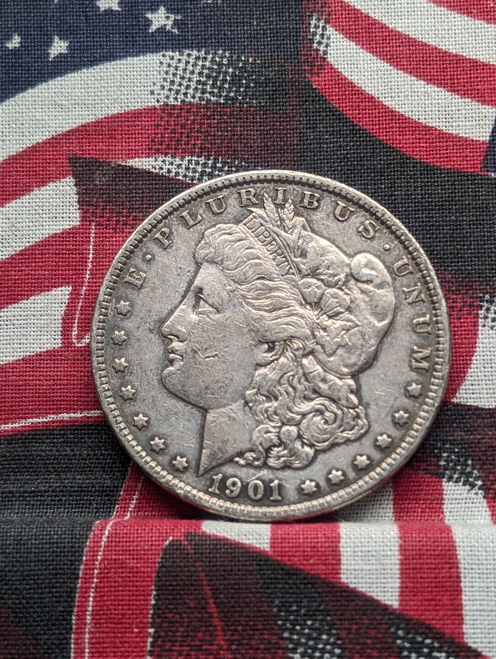 Sold1901-P AU55 MORGAN SILVER DOLLARANOTHER FRESH, FRESH, FRESH!!!!! MORGAN DOLLAR DEAL FROM YOUR FRIENDS HERE AT COINS & AUCTIONS SINCE 1994!BY ORDER OF THE CONSIGNOR, NONE OF THESE COINS ARE TO BE SOLD GRADED, THEY ARE ALL TO BE SOLDSee Sold Price