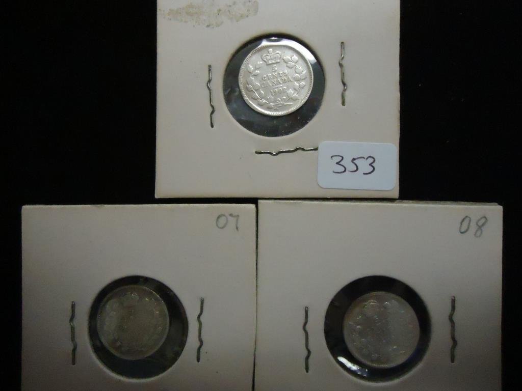 1902,07 & 1908 CANADA SILVER 5 CENTS