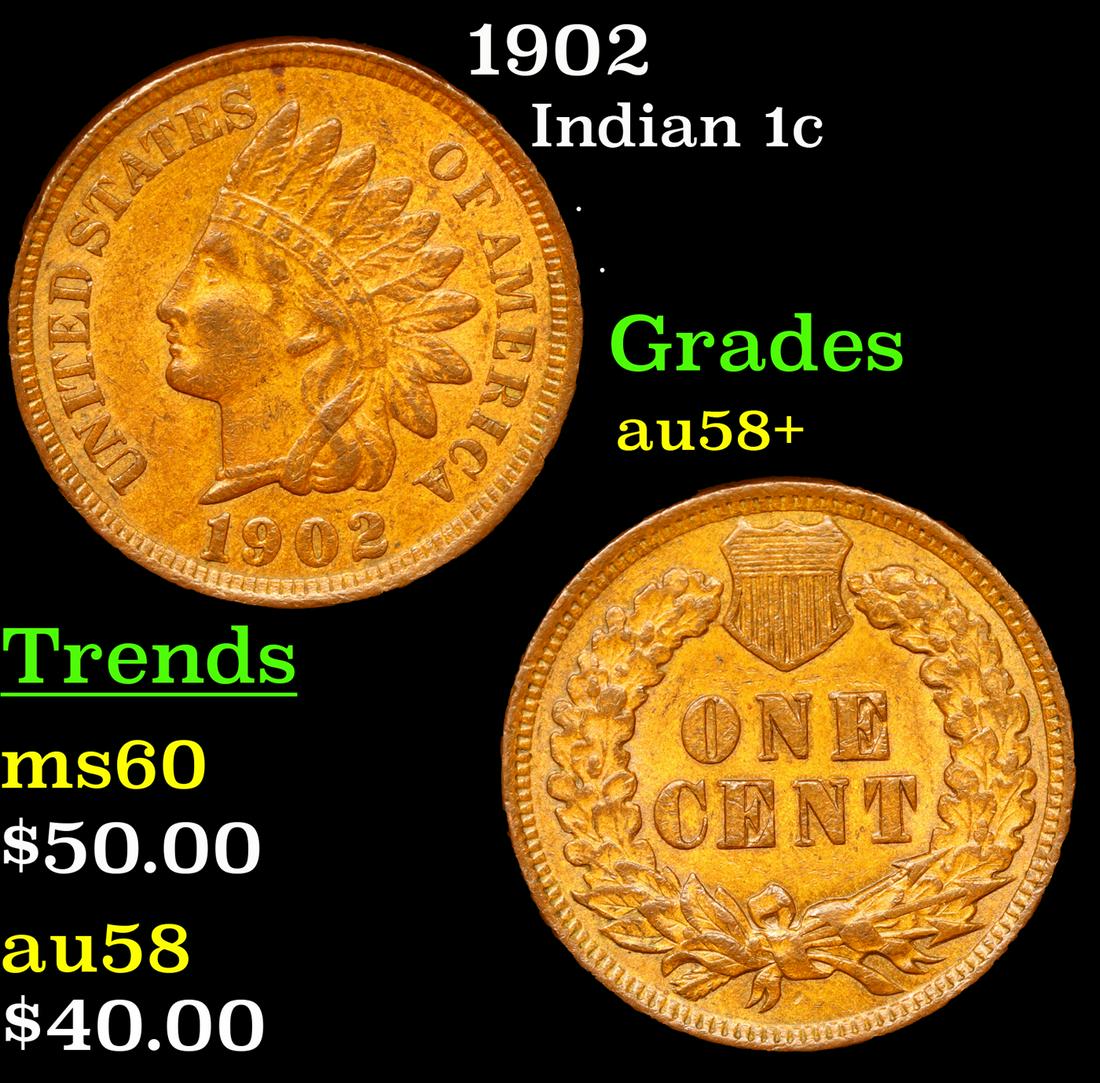 1902 Indian Cent 1c Grades Choice AU/BU Slider+