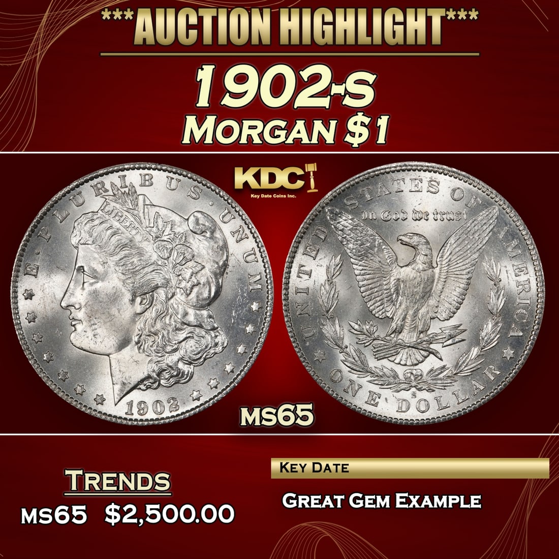 1902-o Morgan Dollar $1 Grades ms65