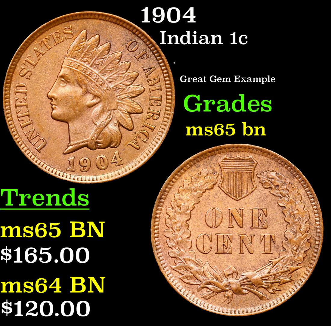 1904 Indian Cent 1c Grades GEM Unc BN