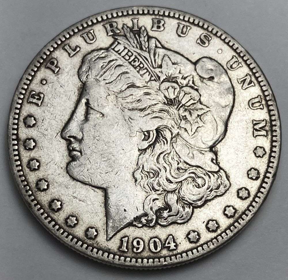 Sold1904-O Morgan Silver Dollar, New Orleans Mint, KM#110, VF ConditionThis 1904-O Morgan Silver Dollar, minted at the historic New Orleans Mint, represents one of the final years of Morgan dollar production prior to its long hiatus after 1904. With a mintage of 3,720,00See Sold Price