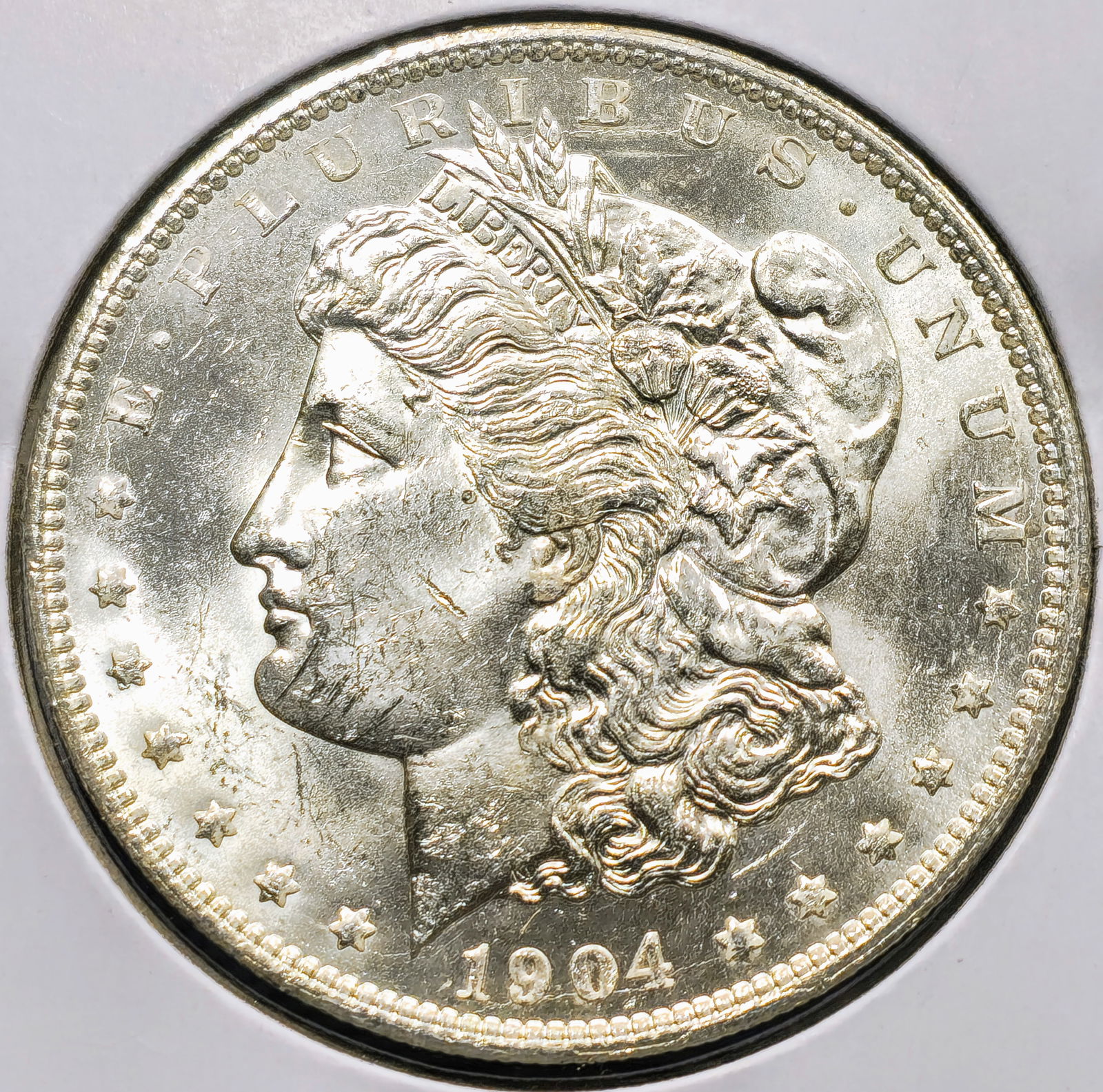 Sold1904-o Morgan Silver Dollar (CH BU, P/L?)1904-o Morgan silver dollar (New Orleans Mint). 90% silver. Per consigner, choice brilliant uncirculated and proof-like. *** Please note: we at Lot 14 Auctions are not professional coin graders. We arSee Sold Price