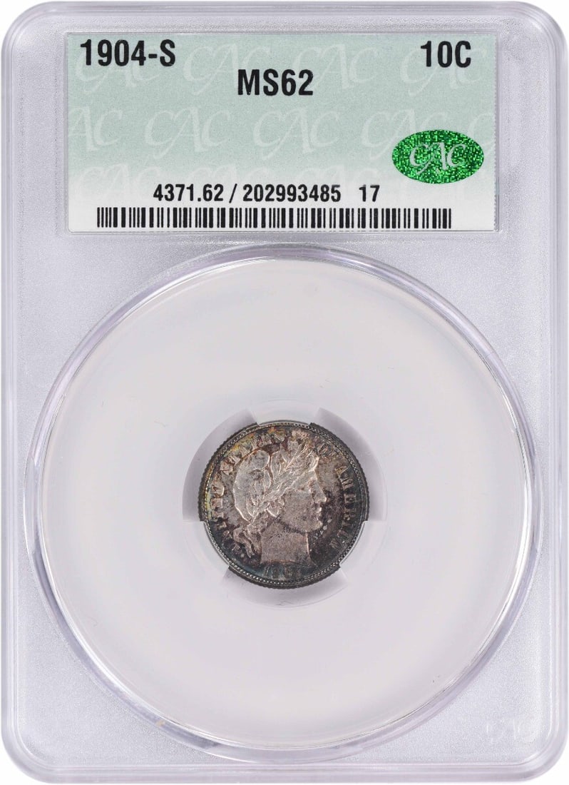 1904-S Barber Silver Dime Ms62 Cacg