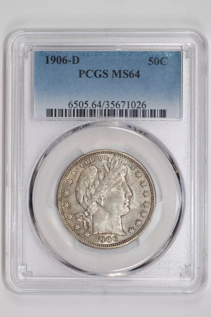 PCGS 1908-D Barber Silver Half Dollar MS65